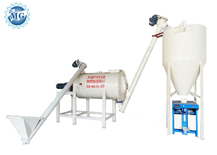 Auf der Grundlage von Mischmaschine des trockenen Mörsers des MultiSpiralenbandes addiert diese trockene Mörseroberputzfertigungsstraße einen anhebenden SekundärSchneckenförderer, einen Endprodukttrichter und eine Verpackmaschine des automatischen Ventils, die einen ganzen Satz der einfachen trockenen Mörserfertigungsstraße vom materiellen Fütterungs, automatischen Mischen, Füllen und Verpackenproduktionsverfahren bilden.